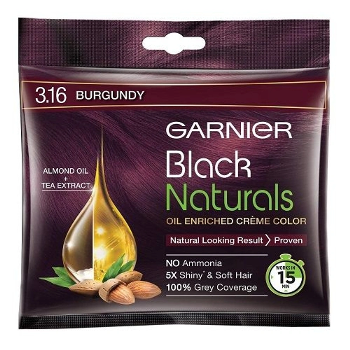 Garnier Black Natural Hair Colour-3.15 Burgundy- Mrp45, Price36/Pcs [Pack of 8pcs]