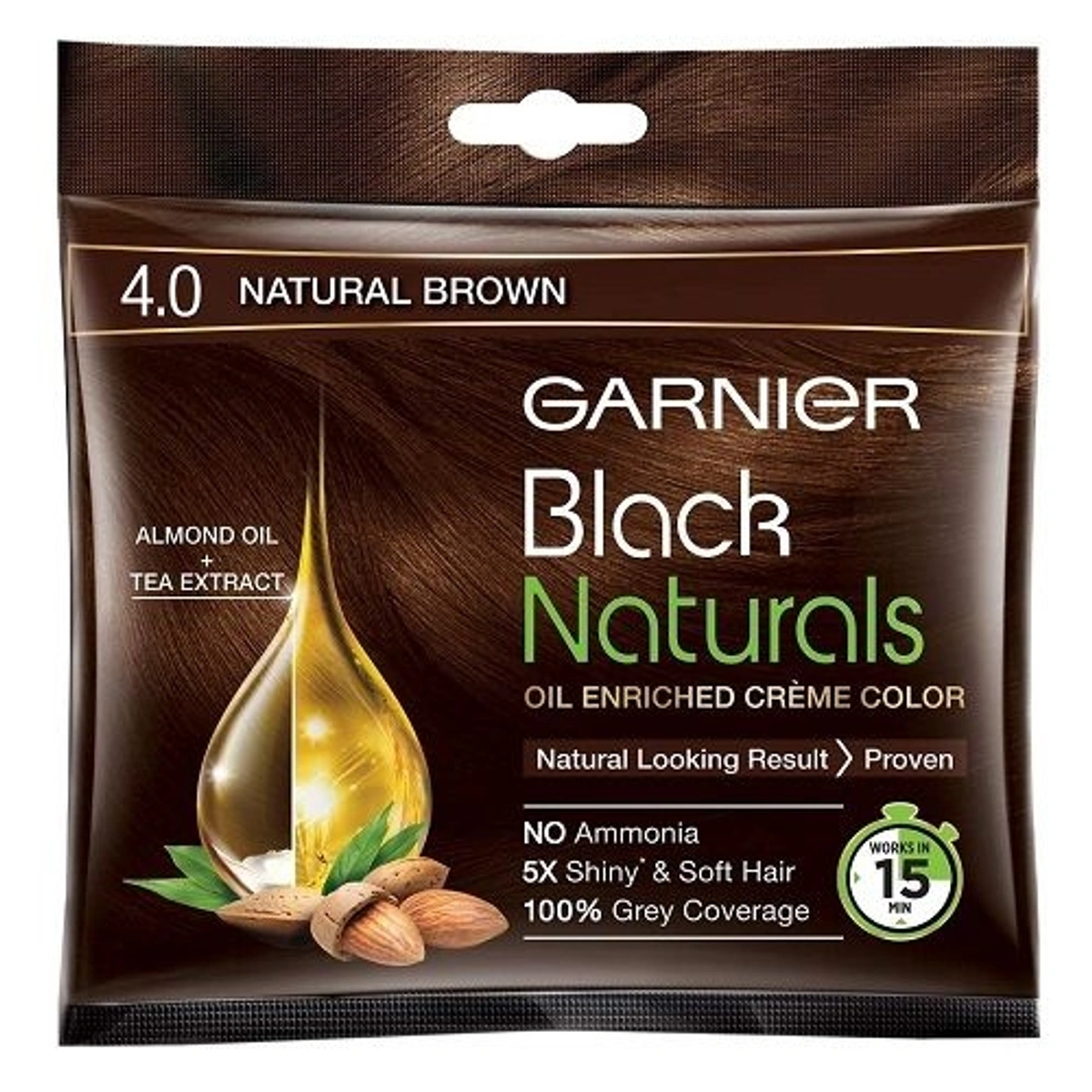 Garnier Black Natural Hair Colour-4.0 Natural Brown- Mrp45, Price36/Pcs [Pack of 8pcs]